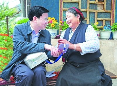 胡昌升书记与青初在一起。 ■ 本报记者 袁飞 文/图 八月的道孚一片清秀,处处呈现出新的希望。8月5日,对于道孚县鲜水镇的6户村民来说,这是他们一生中最难忘的日子,这天下午,州委书记胡昌升在州委常委、州委秘书长、道孚县委书记徐芝文的陪同下,分别来到他们家中认亲,进行一对一结对帮扶。 “春莲您好,我今天认亲来了。”一见到春莲,胡书记显得特别高兴。 “我今天好幸福哦,做梦都不会想到州委书记与我结成亲戚。”春莲听说胡书记要来与她结对认亲,激动得整夜没有合眼,一见面,春莲拉着胡书记的手,激动得说不出话来。 “家里人还好吧?”“日子过得怎么样,有什么困难需要我们帮助解决?”来到春莲家中,胡书记一边详细填写结对认亲登记表,一边与她拉起了家常。 春莲高兴得合不拢嘴:“一切都很好,我们都是老朋友了,没想到今天成了亲戚。”幸福的泪花在春莲眼眶里闪烁。 春莲是前进一村的村支部书记,省党代表和州人大代表,这是胡书记第三次来到她的家里。 “我记得你比我小一岁,我是州委书记,你是村党支部书记,我们都是书记,一定要带领大家发展生产,让老百姓走共同致富的道路,让老百姓过上更加幸福美好的生活。”胡书记叮嘱着她。 今年6月,州委决定举全州之力开展群众工作全覆盖,要求全州5万多名公职人员都要按照全覆盖、就近就地和集中联户原则,与州内各族群众结对认亲。要确保做到心到情到身到,走亲戚问冷暖,叙真情解难事,以最直接、最真诚、最有效的方式温暖全州20万余户农牧民,让他们真切地感受到党就在身边,干部就是亲人,形成干部职工全参与、群众工作全覆盖的新格局。道孚县是胡昌升的联系点,来州工作不到半年,他便先后12次来到这里,踏遍了这里的山山水水,与这里的各族干部群众结下了深厚情谊。 (下转第二版) |