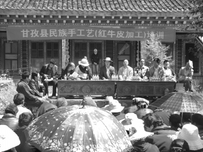近日,甘孜县人才交流和就业服务局组织开展了民族手工艺(红牛皮加工)技能培训。 此次培训在四通达乡广大农牧民群众不再像往常那样专门到县上进行集中培训,而是由工作人员和民间手工艺人在家门口给大家手把手地传授技能。培训内容主要包括红牛皮的加工程序,选皮、水泡皮、加石灰泡、上色制作等技能。培训注重理论联系实践,组织参训人员在红牛皮加工现场观摩,
