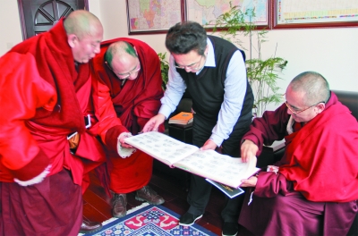 ■ 周福 文/图 我州党的群众路线教育实践活动启动以来,州政府领导班子成员全面贯彻中央和省委、州委决策部署,认真落实州委副书记、州政府州长、州政府党组书记益西达瓦“三个结合”(即:把开展党的群众路线教育实践活动与分管联系工作、全面深化改革、加力深化群众工作全覆盖结合起来)和统筹抓好发展、民生、稳定“三件大事”的要求,下基层、搞调研,进寺庙、勤宣讲,入牧户、问冷暖,深入听意见、深彻查问题、深刻自“画像”,以教育实践活动实实在在的成效,推动政府各项工作落到实处。 带好头 开好局 按照“五个带头”的要求,益西达瓦带头树立问题意识、坚持问题导向,带头以问题查摆、问题整改开局亮相,以实际行动带头在全州政府系统喊响“向我看齐”。 2月26日,益西达瓦与所联系的“同心同向”寺庙石渠县色须寺寺管会主任赤瓦一行7人座谈,对色须寺寺管会向广大僧尼发放藏区寺庙读本《法律》丛书的做法给予了充分肯定。对色须寺寺管会成员带领广大僧众认真学习党的宗教政策和国家的法律法规、藏传佛教进步的教规教义、历代高僧大德倡导的藏传佛教优良传统,促进藏传佛教与社会主义社会相适应作出更大贡献提出了殷切希望。 在北京参加全国“两会”期间,益西达瓦没有片刻停顿对藏区发展、民生、稳定问题的思考,没有片刻停顿对政府系统深入开展教育实践活动的思考,委托在石渠县开展教育实践活动的州政府副秘书长李言明围绕“经营性、劳务性、财产性、转移支付性”四大收入,就各级党委政府惠民政策在基层运行、落实、成效等进行深入全面客观地调研,并不时通过电话了解调研进展、问题梳理情况,指导调研工作。 3月21日,十一届州人民政府第15次常务会议上,益西达瓦在对全州政府系统教育实践活动进行再强调、再落实后,根据州人大代表、政协委员集中反映的省道211线建设问题,赓即率队赴省道211线水电开发复建段和泸定、康定、丹巴三县自建段现场办公,破解难题。 跟上趟 抓落实 藏历新年期间,州委常委、州政府常务副州长汪洋来到甘孜县大金寺,面对面征求寺庙僧众意见建议,实地了解寺庙管理和各项惠僧利寺政策落实情况,认真查看寺庙僧侣生活学习环境。对加强寺庙僧众汉语能力、州情认知、综合能力等方面的培养进行了指导,对甘孜县加大支持力度,帮助寺庙培训教师、财务人员更好地造福百姓。(下转第四版) |
