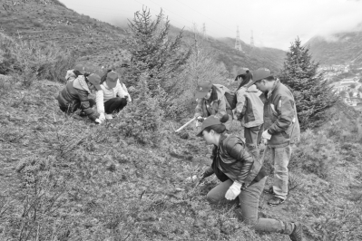 4月4日,康定县启动春季全民义务植树活动。活动受到州县党群、政府部门干部职工,驻康部队以及青年志愿者约1万余人的积极响应。4日一早雅拉乡鱼龚山上彩旗飘扬,人员忙碌。义务植树人员三人一群、两个一组,挖坑、运树苗、扶树、铲土各个工作环节有条不紊,2万余株云杉树为鱼龚山披上了“绿装”。 彭娟 摄影报道