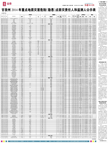 甘孜州2014年重点地质灾害危险(隐患)点防灾责任人和监测人公示表