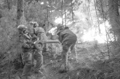 阻截火头。曾鹏 摄