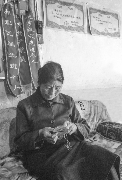 史国秀正在赶做鞋垫。 ■ 杨仕强 本报记者 杨杰 文/图 在泸定县泸桥镇大坝村有一位藏族妈妈,她住在简朴的农家小屋里,平时靠种地卖蔬菜水果维持生计;她的心却时刻牵挂着部队上的孩子们,她用自己的行动诠释着一位伟大母亲对孩子们的爱;她就是今年已68岁的拥军爱兵模范史国秀。 永远不变的爱兵情怀 见到史大娘时,她正在家里忙着拉鞋垫。“眼看着新兵娃娃们到部队的日子越来越近了,我的鞋垫要赶着做完,让他们到部队时能带上。”史大娘一边招呼我们坐下一边还忙着手里的活儿。据村干部介绍,往年这个时候史大娘早为送往部队的新兵娃娃准备好了自己的礼物,今年由于8月3日云南鲁甸发生地震,史大娘在电视上获得消息后,就去了灾区看望慰问救灾官兵和受灾群众。前几日刚回到家,就忙着赶做送新兵的鞋垫。 说到去云南鲁甸,史大娘打开了话匣。“我在电视上看到鲁甸地震后,官兵们没日没夜地抢险救灾,有的手脚都磨破了,非常心疼,子弟兵们无私为人民群众奉献,我们也要做一些力所能及的事情表示感谢。可由于刚过完8·1建军节,前头做的鞋垫全慰问了康定、泸定地区的部队战士……。”三天时间,史大娘不分白天黑夜,加紧时间赶做。最后她带着准备好的170双鞋垫和80条哈达赶往灾区。从泸定到石棉、从石棉到西昌、从西昌到昆明、从昆明到鲁甸,史大娘饿了就吃自己带的干粮、困了就在车上打盹儿,转了4次车后,于8月9日下午终于到达了震中龙头山镇龙泉村安置点,为乌蒙铁军的子弟兵们送上了洁白的哈达和亲手缝制的100多双鞋垫。 据了解,史国秀是泸定县家喻户晓的拥军模范,曾经给维和战士、汶川地震救灾子弟兵等都赠送鞋垫。“不管再远的路,只要是我看到了,我都要送过来,让战士们知道人民和子弟兵心连心。”史国秀说。 汶川地震,史大娘卖掉了家中仅有的12只鸡,又到山上采了两天的蕨菜拿到街上卖了,凑钱做了220双鞋垫,坐车到都江堰看望慰问抗震救灾官兵。海地地震后,她找到了四川慈善总会,向中国救援队捐赠了自己一针一线缝制的鞋垫。玉树地震后,她到州民政局,为部队官兵送去了鞋垫。这次芦山地震后,她赶又到芦山,把亲手缝制的鞋垫交到了参加抗震救灾的泸定民兵手中。民兵们说,汶川抗震救灾,我们在灾区看到了史大娘,垫上了史大娘的鞋垫,没想到在芦山,我们又见到了史大娘,就象见到了亲人一样。史大娘的鞋垫是给予我们最好的慰问品,是对我们最好的鼓励。史大娘说,送鞋垫是想让官兵们的脚在来回奔跑救援中舒服一点。她还说,我的鞋垫上都绣着“一路平安”,就是希望官兵们平安的去救援,平安的回来! 史大娘从1992年开始,每年春节、建军节都要到泸定县人武部、泸定兵站、武警中队、消防中队去看望慰问。她说,每年春种秋收的时候,官兵们都来帮她,逢年过节还给她送来米面油。她去看看战士们,为他们带点自家地里种的蔬菜,自家养的鸡鸭,自己做的鞋垫,是理所当然的。她从来没有想过,是因为自己对军队、对官兵朴实的爱,官兵们和她的感情越来越深厚。 伴随一生的红色烙印 史国秀出生在泸定县岚安乡,岚安乡是革命老区,是红军长征经过和战斗的地方。1935年11月,红军方面军第32军和第4军的一部分约11个团到达泸定岚安乡,11月中旬成立岚安区苏维埃政权,此后相继成立昂州、昂乌、脚乌和乌泥岗4个乡苏维埃政权。红军还成立了区、乡游击队。她的父亲就是当时36名游击队中的一员,参加过保卫红色政权、打击地方反动势力的战斗。史国秀的母亲经常为她讲述红军在岚安为保护老百姓,为了让老百姓翻身得解放,为了让老百姓过上好日子,坚持战斗不畏牺牲的故事。其中有一个故事始深刻地印在史国秀心里。一名12岁的小男孩,在江西参加了红军,跟随大部队走到岚安时,已经面黄肌瘦,衣衫褴褛。史国秀的母亲拿出家中仅有的粮食让小红军吃,又为小红军把衣服补好,后来将小红军送回了部队。 也许这个故事将注定成为史国秀一生的红色记忆,所以从小生长在革命老区的史国秀,对军队、军营、战士怀着特殊的红色情怀,从小他便有了深深的红色烙印。从1979年的泸定烂柴湾山体滑坡开始,到泸定特大泥石流、汶川地震、康定“7.23”泥石流、玉树地震、2010年康定金汤泥石流、芦山地震,哪里有解放军、武警官兵救援的身影,哪里就有史大娘看望慰问官兵的身影。 每当发生灾难时,官兵们不顾自己的安危,上山下河,救人、抢救财产,我心疼他们,我就想一定要到现场去看看他们,为他们送几双鞋垫,带点吃的。看到他们平平安安,我心里也就踏实了。回家后,睡觉安稳了,吃饭也香了。普普通通的话却道出了史大娘心中对子弟兵的真挚感情。 记者手记: 人间处处显大爱 在采访中记者发现,史大娘谈自己的少,在谈别人是如何帮自己的时候,却讲得最多。她说,汶川地震时,自己坐车到都江堰,找抗震救灾指挥部,一位年轻姑娘看到她这么大年纪还去抗震救灾时,帮她背上东西,陪着她从上午九点找到中午十二点半才找到指挥部。史大娘说,之前,自己还吃了些干粮,而那位姑娘却是粒米未粘啊。泸定发生洪灾的时候,她在泸定街上为救援官兵买慰问品时差20元钱,一位素不相识的老大爷为她支付了这二十元钱,并且死活不告诉她自己的住址和姓名……。这一个个经历让她感受到了人间的真情和大爱,她的行动、她的事
