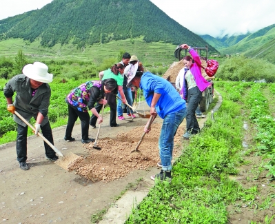 帮助村民修路。道宣供稿 ■ 本报记者 袁飞 宋志勇 “为了谁,为了秋的收获,为了春回大雁归………” 这是人们熟悉的歌曲《为了谁》,是昭示着人们大爱铸青春的一首经典红歌。 自我州开展举全州之力推进群众工作全覆盖以来,作为北路的东大门,道孚县是如何抓群众工作的呢?又是怎样推进群众工作的呢?与群众的关系又怎样呢? 群众工作全面推进 2012年6月29日,州委启动群众工作全覆盖活动以来,该县广大干部职工积极响应,全身心投入到群众工作浪潮中,取得了阶段性成效。结对认亲结出情义,党群干群关系更加紧密,2399名干部职工与10124户农牧民家庭结成对子,收集群众困难1978个,解决923个,帮扶现金、物资折现2737万元,让群众真切感受到了党就在身边、干部就是亲人。爱心帮扶传递温暖,困难群体得到关爱。科级以上领导干部联系帮扶孤儿90人、特殊困难群体851人,帮扶现金物资折现42.5万元,并对339件群众困难问题落实责任加以解决,让困难群体得到关爱帮助、处处弥漫真情。同心同向建牢纽带,宗教领域更加和谐。36名州、县领导与32座寺庙结成对子,对寺管会成功改组,提高了寺管会成员待遇,选派了30名觉姆到北京参观学习,把968名贫困僧尼纳入低保,全部僧尼纳入新型农村合作医疗保险,宗教领域日趋和顺。幸福工程造福百姓,人民群众得到实惠。投入3.03亿元实施幸福工程项目120个,完成总工程的34.78%,涉及群众切实利益的出行难、饮水难、用电难、通信难等普惠性的民生问题得到逐步解决,群众生产生活条件不断改善。共建共创夯实基础,基层党建不断加强。104个州县机关、企事业单位党支部与160个村、社区党支部全面完成结对共建共创,制定了共建措施,建立了共建制度,确保基层党组织晋位升级率达100%,基层组织凝聚力、战斗力不断增强。宣传教育凝心聚力,“四个道孚”深入人心。开展“爱国守法感恩”主题教育活动125场次,5800余人(次)农牧民受教育。 “感谢党和政府,感谢各级领导和干部。自2012年6月开展群众工作以来,我有了干部亲戚后,亲戚每月从并不高的工资拿出一点,为我家三口买米、面、油等解决生活上的燃眉之急,县上的领导更是关心我的生活,安排资金为我修房子,联系单位给我了5000元建房资金。真是想不到,以前想见一下乡干部都很困难,更不要说见领导,现在不要说见领导和干部,他们亲自到我家帮忙修房子,圆了我新房之梦,我会一辈子都记得,虽然我是一个文盲,记不住领导和干部的名字,但是他们的恩情我永远记得。”不善表达的道孚县鲜水镇扎日村村民阿姐班马抑制不住内心激动地说。 (下转第二版) |