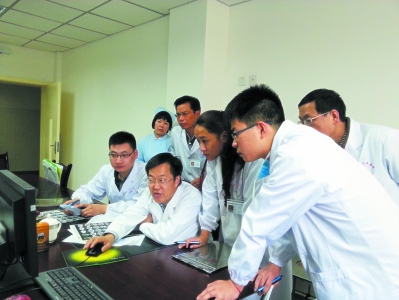 ●梁宗安教授(中)在内一科开展临床教学指导。