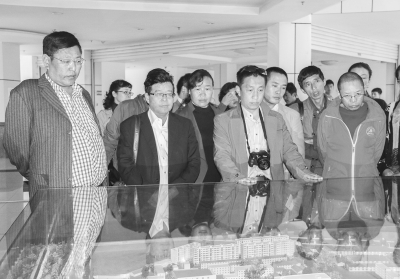 考察团在参观四川省职业技术学院校园建设沙盘。