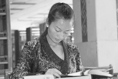 西南民大旅游管理专业学生尼玛错在图书室查阅资料。