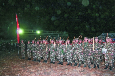3、武警四川总队二支队官兵在康定祖庆小学救援。