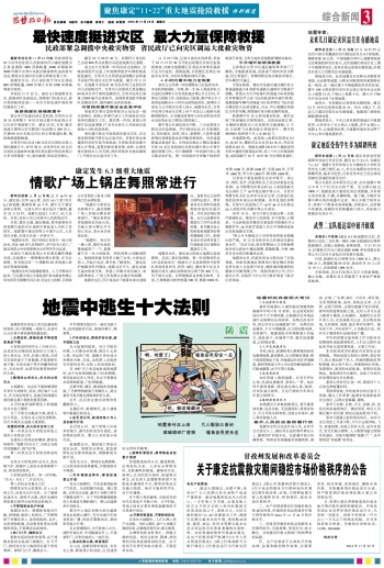 关于康定抗震救灾期间稳控市场价格秩序的公告