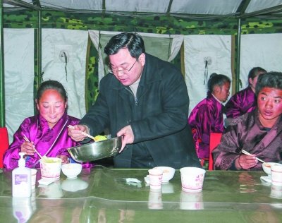 ■ 本报记者 陈杨 文/图 水饺,是中华民族的传统食品,有家人团聚之美好寓意,更有祝福美好未来之义。12月14日晚,康定“11·22”6.3级地震前线指挥部救援人员,为木雅祖庆学校即将放寒假的师生们做了一顿香喷喷的饺子,让他们感受到了家的温暖。 帐篷外温度已骤降到零下10度,帐篷内钢炉在滋滋的冒着热气,大家围坐在一起吃着水饺,一边聊着未来生活,暖意融融。在这个季节,海拔4000米震后的塔公,无疑是寒冷的。但回眸震后每一天,无疑又是温暖的。木雅祖庆学校的学生们在地震第一夜便住进了温暖的救灾帐篷;在震后第一个清晨便准时吃上了热腾腾的早餐;在震后几天就搬进了临时搭建的板房学习、考试。在这特殊的一学期里,学校的孩子们在各方支援和帮助下安全、顺利的完成了学业。面对灾难,学校的老师和孩子们表现出了前所未有的勇敢和坚强。 “这水饺做得很不错”,州委书记胡昌升一边吃着水饺,一边对坐在身旁的学生泽仁巴姆说道,“明天就要回家过寒假了,你们家里也受了灾,回家一定要多帮忙做事”。泽仁巴姆连连应允,“回去我还要告诉父母地震时学校发生的一切,有这么多叔叔阿姨帮助我们”。 此时坐在一旁的州委常委、宣传部长相洛说,“今天为了做这一顿饺子很不容易,这里海拔在4000米,用一般的锅煮不熟,用高压锅又会煮烂。为了做好这顿饺子,大家费了不少心思”。 “现在你们正是长身体的时候,一定要多吃一点”,胡昌升边往学生降措碗里盛饺子和白菜一边说道。 明天木雅祖庆学校的孩子们就要放寒假了,大家心里都有句此刻最想说的话。第一个发言的是泽仁巴姆,她说,“希望我们的学校会建得更漂亮,弟弟、妹妹会生活得更好”。 州委常委、州政府常务副州长陈忠义说,“祝愿孩子们健康成长”。 州委常委、康定县委书记唐强接着说,“希望孩子们好好学习,放假后回家多干活,用新的面貌和精神战胜困难”。 州人大常委会副主任李致民说,“木雅祖庆学校的孩子们面对地震的勇气让我们非常钦佩”。 甘孜军分区副司令员夺呷泽郎说,“有困难,解放军叔叔一定会帮助你们的”。 学生多吉降泽说,“地震无情,人有情,明天会更加美好”。 州教育局长嘎绒拥忠说,“面对困难,你们是最棒的”。 学校校长德吉拥忠说,“从地震到今天,所有救援人员都给予我们的一点一滴关心,孩子们要记取,学会感恩”。 相洛说,“灾后塔公会变得更加美丽”。 每一句话都饱含了抗震救灾期间大家结下的深厚情谊和对美好未来的期望。听完大家的话,胡昌升说,“在这里我要祝孩子们健康成长,寒假里把在学校学到的避震知识介绍给家人,与父母一起共同克服眼前的困难。我也相信,学校的明天一定会更加美丽,学生、老师们的明天一定会更加美好。” 纵然前路困难重重,重建任务依然艰巨,但同舟共济,始终如一;这份爱,一定会让灾区群众挺过严冬,让灾区生生不息,让大地回春。 |