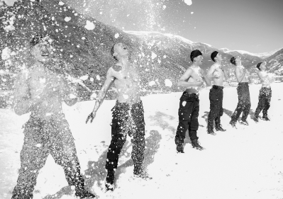 支队紧密结合任务特点,严密组织军事训练,提高部队的战斗能力。在风雪中开展班组战斗动作协同、擒敌术等技战科目训练,让官兵在风雪中练意志、强体魄,强化战斗技能。此外,支队在确保安全的情况下,组织官兵洗雪浴,提高官兵抗寒能力,强化官兵身体雪地擒敌术动作训练。