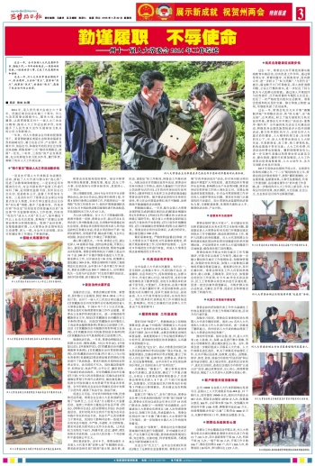 过去一年,全州各级人大代表履职尽责、勤勉工作,一年年的新做法,一届届的好经验,一桩桩的实心事,汇成了代表履职的和谐曲。