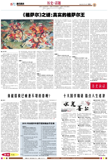 温馨提示: (最终节目以除夕当晚播出为准) 1、 开场舞蹈(开春)全体舞蹈演员 2、 主持人开场大拜年 6位主持人 3、 歌曲组合(欢天喜地过大年) 4、 相声(麻烦不麻烦)曹云金、刘云天 5、 舞蹈(魅力中国)吉林歌舞团、中央舞蹈团 6、 相声(细说年俗)马东、刘伟、郑健、周炜 7、 歌曲(中国梦)日照明星 8、 贺年榜【1】 9、 歌舞(美丽青春曳步舞)R.Z.S 舞团 10、 小品(过年)郭冬临、牛莉、魏积安 11、 创意节目(梦幻春晚)魔幻三兄弟 12、 儿童节目(羊羊过大年)海娃幼儿学院 13、 歌曲(静静河水)李健、萧敬腾 14、 小品(爱情公寓)孙艺洲、李金铭、赵文琪、邓家佳、金世佳、陈赫 15、 歌曲(小小世界)娄艺潇 16、 贺年榜【2】 17、 民俗歌舞(大联欢)各少数民族舞蹈代表 18、 小品(戏里戏外)刘小光、田娃、毕福剑 19、 歌曲(连年有余)戴玉强、张燕 20、 近景魔术(时间)刘谦、董卿 21、 军旅歌曲合唱(祖国光荣)总政歌舞团 22、 相声(时间去哪了)大兵、赵卫国 23、 2014中国好声音联唱(唱响春晚) 24、 歌曲(美丽中国梦)曹芙嘉 25、 小品(力争第一)冯巩、邵峰、阎学晶 26、 武术节目(中华武术魂)成龙 27、 贺年榜【3】 28、 戏曲节目(万紫千红梨园春)中国京剧院 29、 歌曲(盛世之春)廖昌永、张也、阎维文 30、 零点钟声(2015) 31、 迎春大联欢(中国年)全体舞蹈演员 32、 歌曲(拜年歌)严当当、吴春燕、王丽达、雷佳、陈莉莉 33、 小品(一切只为你)蔡明、郭达、黄杨 34、 创意歌舞(春之声圆舞曲)钢琴演奏:郎朗、玖月奇迹 35、 结束歌曲(难忘今宵)杨洪基、关牧村、佟铁鑫、王霞、王莹、莫华伦 2015央视春晚播出时间:2015年2月18日(除夕)20时整 |