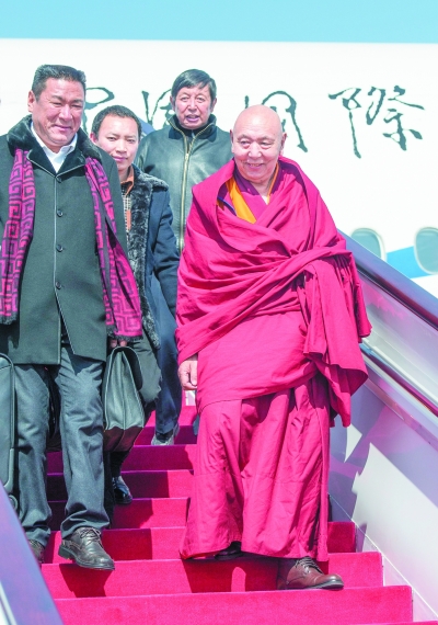 ①3月1日,来自西藏自治区的全国政协委员抵达北京,出席全国政协十二届三次会议。