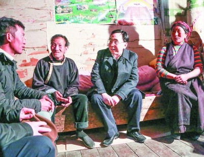 ⑥朱小丹在丹巴甲居藏寨与广东游客亲切交谈。