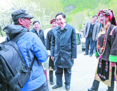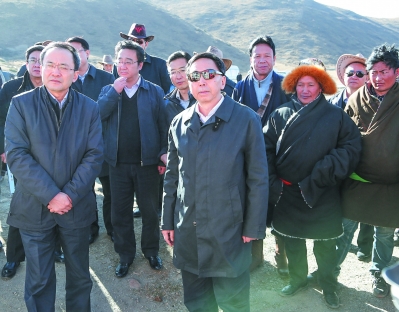 ⑤朱小丹在夺拉嘎姆村调研地震灾后重建。