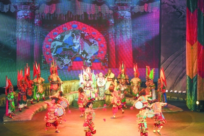 经历数百年的演变,格萨尔藏戏在甘孜藏区发展出:竹庆寺院格萨尔藏戏、色达格萨尔藏戏、马背格萨尔藏戏、现代格萨尔藏剧、格萨尔舞蹈5种戏剧形式。其中,色达格萨尔藏戏、马背格萨尔藏戏、现代格萨尔藏戏不仅已深入民间,而且走向了广阔的世界,受到国际人士的喜爱。随着藏民族对现代戏剧理解的深入,格萨尔藏戏这一古老的艺术形式,正在焕发出新的青春。 ■ 益邛 竹庆寺院格萨尔藏戏 [寺院跳神羌姆,是一种宗教祭仪舞。藏戏是具有文学剧本的戏剧,文学剧本在整个戏剧艺术中占有重要地位,它规定了一部戏的主题思想、人物、情节、语言和结构,是舞台演出的基础和依据。因此格萨尔乐舞和格萨尔藏戏是两个不同的表演艺术形态,其传播和流传的方式也是不同的。] 竹庆寺坐落在德格县境内。于公元1685年,由第一世竹庆主持白玛仁增大师创建,是宁玛派六大著名传承基地之一,被称为竹庆母寺。该寺还办有遐迩闻名的喜日森佛学院,世代培养了诸多著名知识人士。寺院历代主持对格萨尔文化倍加关注,第一世主持白玛仁增大师以开启净意伏藏的形式,撰写了格萨尔史诗中的《分配大食财宝》,藏区不少百姓被视宝物珍藏家中。该寺大堪布白玛巴杂尔也以开启意藏的形式,撰写了格萨尔王传《雪山永晶宗》。作为竹庆寺堪布的一代宗师居米旁大师撰著了“格萨尔金刚寿王”等系列祈供偈,在整个藏区的诸多教派中产生了深远的影响,成为其祈请护法的传承仪轨。时至今日不少寺院上师、僧众仍然延续着这一绝无仅有的“祈祷仪轨”。居米旁大师还史无前例地创立了“岭卓德钦若莫” (格萨尔舞蹈),至今流传在一些寺院和民间。如此格萨尔文化氛围,竹庆寺第五世活佛土登曲吉多吉(1872-1933),继而创建了格萨尔寺院乐舞,首次把格萨这一民间说唱艺术转换成寺庙乐舞艺术形态,格萨尔王及麾下大将成为人物形象化的视觉艺术,呈现在人们的眼前。创立格萨尔乐舞缘起,有资料记载,土登曲吉多吉活佛时常思考如何以跳神的形式,塑造格萨尔王和诸位大将的形象。令人惊奇的是,在一次梦境中,岭·格萨尔王和八十员大将,七大名女十三威尔玛战神,其肤色、坐骑毛色、鞍辔、手持兵器等一一呈现在活佛的眼前,突然激活了他的灵感。于是,组织各类工匠,遵循活佛创意,制作岭国八十员大将的面具、服饰、道具等。一切就绪后在寺庙广场上首演,受到观众的热烈欢迎。以后格萨尔舞作为竹庆寺定期传承仪轨,每年的金刚橛修供大法会的最后一天演格萨尔藏戏。有资料记载,竹庆寺的格萨尔羌姆还传到了青海贵德县昨那寺等寺院。民改及“文革”期间中断,二十世纪八十年代初恢复了寺院格萨尔羌姆舞。竹庆寺格萨尔藏戏表演风格与寺庙金刚舞相同。它是一种祭典式面具乐舞,有专门的乐舞仪轨,表演时岭国八十员大将穿上华丽服饰,戴面具按寺院传统打击乐节奏跳舞,十三战神个个出场亮相,三十大将人人登台而舞。舞蹈队形一般围成圆。内围由大将构成,外围为十三战神。舞蹈结构为单人舞和群舞。每一大将单独出场亮相,各自有不同的舞姿。幕后伴祈请奉诵声和打击乐。舞蹈动作沿袭了寺庙跳神风格。自恢复格萨尔乐舞后,竹庆寺还新编了马背格萨尔表演形式。这种独具特色的格萨尔表演艺术风格,直到今天在整个藏区绝无仅有。因为它具有寺院乐舞特质,不可能在民间流传。寺院跳神和藏戏在过去历史上有着千丝万缕的联系,都源于藏族远古的傩文化。然而在长期的发展过程中形成了两种不同的概念,寺院跳神羌姆,是一种宗教祭仪舞,藏戏是具有文学剧本的戏剧,文学剧本在整个戏剧艺术中占有重要地位,它规定了一个戏的主题思想、人物、情节、语言和结构,是舞台演出的基础和依据。因此格萨尔乐舞和格萨尔藏戏是两种不同的表演艺术形态,其传播和流传的方式也是不同的。 色达格萨尔藏戏 [色达格萨尔藏戏是在安多藏戏的基础上发展起来的一种新兴戏剧艺术形态,然而它并非传统藏戏的复制,也没有颠覆传统藏戏,而是为传统藏戏增添了创意性色彩,并融入了时代精神,为振兴藏戏迈出了大胆的一步,在提升格萨尔藏剧表演艺术方面作了有益的探索。] 色达县藏戏系安多藏戏,源于甘南拉卜楞寺,传承于多智钦寺(现为青海班玛县管辖)。当时,多智钦寺藏戏团是色达地区唯一的藏戏团,1980年,该藏戏流派传承人、色达县原政协副主席塔洛活佛(多智钦寺活佛)在县委书记珠朱的全力支持下,在色达县建立了业余藏戏团。先后编排演出了《智美更登》、《卓瓦桑姆》、《朗萨雯崩》、《松赞干布》、《敦月敦珠》等传统藏戏剧目。不久塔洛活佛亲自编写剧本,首次把英雄史诗《格萨尔》搬上了藏剧舞台,得到相关专家学者和广大受众认可和欢迎,塔洛先生也因此成为编、导、演于一身的格萨尔藏戏之父。他先后编排了《赛马称王》、《英雄降生》、《阿里金宗》、《地狱救妻》、《丹玛青稞宗》片段以及歌舞《英雄赞歌》、《岭国七勇士》等格萨尔节目。格萨尔藏戏是在安多藏戏的基础上发展起来的一种新兴戏剧艺术形态,然而它并非传统藏戏的复制,也没有颠覆传统藏戏,而是为传统藏戏增添了创意性色彩,融入了时代精神,为振兴藏戏迈出了大胆的一步,在提升格萨尔藏剧表演艺术方面作了有益的探索。以后色达藏戏团更名为色达县格萨尔剧团。