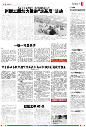 县以下机关建立公务员职务与职级并行制度,是完善公务员制度和深化收入分配制度改革的重要内容,政策性强,涉及面广,面临的情况复杂,必须认真做好组织实施工作。