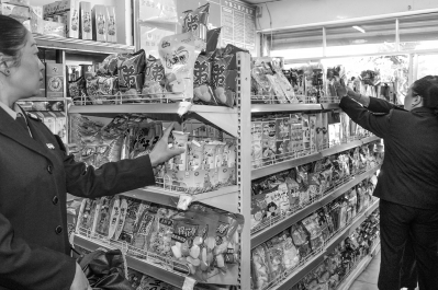 端午节前夕,炉霍县食药监局组织执法人员,重点对辖区内商场超市、农贸市场、食品店和经营商户进行了全方位的检查,特别是对市场上所售卖的粽子等端午必备品进行样品抽查,查看食品及外包装,有无厂名厂址、生产日期、保质期等标识,有无过期发霉变质、包装破损、是否按规定的贮存等现象,全力确保“舌尖上”的安全。图片为执法人员抽查现场。(胡筱红 摄影报道)