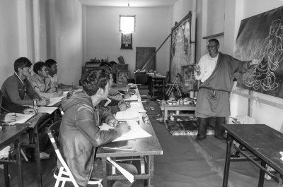■ 余应琼 文/图 一间屋子、一群青少年、一位老人,一段温馨的故事。老人叫呷绒多吉,今年67岁,家住甘孜县斯俄乡一村,是一位民间绘画艺人,人们都亲切地称他为心灵的绘画师,这不仅源于他精湛的绘画技艺,更源于他助人为乐、乐善好施的高贵品质。 勤学苦练成画师 呷绒多吉从小喜欢画画,那时候,家里条件艰苦,没有钱买纸和笔,他就用木棍在地上练习。17岁那年,呷绒多吉在上山放牧时,遇见了一位精通唐卡画的民间画师,画师见他热爱绘画,便与他结下了师徒情缘。短短两年时间,呷绒多吉学会了制作画布、构图起稿、勾线定型等一系列流程,美中不足的是受条件的限制无法学习着色、染色这门技艺。1982年的夏天,呷绒多吉独自踏上了去拉萨求学的道路,在那里他学习了唐卡染色技艺。学成归来后,该县很多寺庙都邀请他去绘制唐卡、壁画等,他刻画的佛像栩栩如生,景物逼真动人。 随着名气越来越大,慕名前来拜师学艺的人也越来越多,他已经记不清教过多少学生画画了。但是,他时刻铭记于心的是除了教授学生绘画,还教诲他们作为一个画者要有艺术的道德和担当。 一人行善,全家支持 走进呷绒多吉家中,这位和蔼可亲的老人正声情并茂地给二十几个青少年讲唐卡的绘画技巧。厨房里,一个年轻妇女正忙碌着准备午餐,分量足够二十几个人吃。 “大姐,你们家有几口人啊?”笔者好奇道。 “五口人啊!” “为什么要做这么多的饭菜呢? “爸爸办了一个绘画班,这些饭菜是给学习绘画的学生们准备的。” 四年前,呷绒多吉自筹资金在家中办起了唐卡绘画培训班,绘画所用的纸张、颜料、笔墨等全由他免费提供给学生,几十个学生的伙食,则由家中的儿媳李露华承担,家务事由妻子夺呷一个人操持。四年如一日的坚持,其中的辛苦不言而喻,家人却毫无怨言,日复一日年复一年地无私奉献着。 呷绒多吉告诉笔者:“这个培训班的学生有两种,一种是本身热爱画画的,还有一种是不好好上学,不听家长话,又不愿意打工挣钱的。学画画,能让这些孩子静下心来,因为画画是需要静下心来才能做好的一件事。孩子们学到一技之长后,面对未来他们会更有自信。” 呷绒多吉的二儿子向巴子承父业,如今在当地也是个小有名气的民间画师。他除了帮着父亲教学,还四处联系画画的门路,带着学生们一起外出画画,一边学习一边实践。 培训班学生仁青彭措今年23岁,是斯俄乡一村村民,跟着呷绒多吉学画画已经有3年多了,他告诉笔者,在这里学习画画,不仅能够学到一门技艺,还学会了做人做事的道理,自己一辈子也不会忘记老师的恩情。 面对学生感激的话语,呷绒多吉说:“我只想尽自己最大的力量帮助这些孩子,把平生所学传授给他们。” 老人及全家的善举感动了很多人,团县委听说呷绒多吉四年来无偿教授青少年学习唐卡绘画的事迹后,多方筹措资金为培训班购买了几十套桌椅。 斯俄乡党委政府问老人有什么困难需要帮助解决时,老人却说:“什么都不需要,如果你们知道有谁家的孩子不听话,就帮我动员到培训班来学画画。” 呷绒多吉心系社会青年,他用自己微薄的力量温暖、感染着身边的每一个人。 |