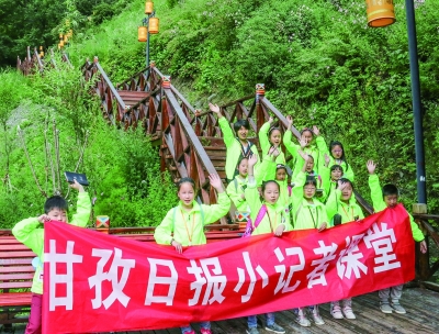 清晨与夏令营的同学们在报社汇合,大家一个个像快乐的小燕子。