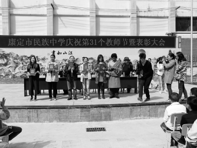近日,康定市民族中学举行了优秀教师表彰大会。会上,对“州、校级优秀班主任”“州、校级优秀教师”及“校级优秀工作者”等28名教师进行表彰,学校特邀110名家长参加了此次表彰会。图为表彰大会现场。(本报见习记者 泽仁正光 摄影报道)