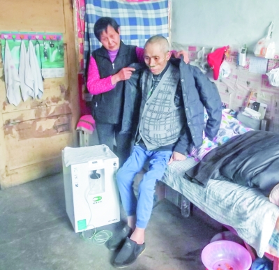 每天早上,滕德芬先给丈夫黄良清穿衣、洗漱、按摩,然后给他喂饭、翻身、洗衣服。等这些都料理妥当,时间也就过去了两个小时。