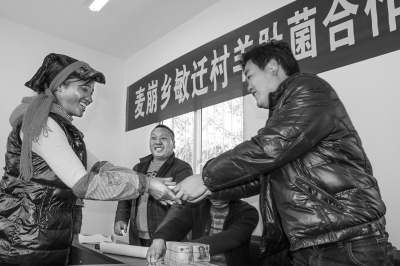本报讯(记者 杨杰 廖华云 文/图)“现在我们开始发放劳务工资,高贵荣185个工,工资18500元……”1月5日上午,康定市麦崩乡敏迁村村民活动中心热闹非凡,康定市绿高原羊肚菌种植农民专业合作社正在发放2015年的工资。来自该乡敏迁、初咱两村的45名村民领到了“过年钱”,多则上万、少的也有几千,而这仅仅是他们去年8至12月4个月的劳务所得。 总共24万元的工资,从早上9点一直持续到12点才发放完。迎着正午暖心的阳光,村民们的心里乐开了花儿。 据麦崩乡敏迁村村委会主任、绿高原羊肚菌种植农民专业合作社社长杨贵全介绍,自从去年自己在村里试种羊肚菌成功后,村民们有了积极性,村上成立了合作社,全村37户村民29户入社,并以土地入股形式参与到羊肚菌产业发展中,共流转土地100余亩。从去年8月开始专业合作社共聘用45人务工,羊肚菌销量持续攀高,还长在地里,货就被买家预订一空,总收入比以前种粮食可翻了好几十倍。 刚领到工资的高贵荣正细心数着手里崭新的百元大钞,他满脸喜悦地说:“没想到羊肚菌产业真给我们带来了大实惠。”在谈到土地入股时,他说,家里的2.5亩土地全都入了股,以前这些土地就种些玉米、大白豆,地里根本挣不了钱,有劳动力的大多都出门打工了,很多土地就闲置起来。现在村上把这些闲置的土地集中利用起来,不仅让我们有工打,还让我们能在地里发财。 麦崩乡党委书记徐培勤介绍说,敏迁村是全市59个贫困村之一,也是确定今年年底要脱贫摘帽的村子之一。按照该村现在羊肚菌产业、中藏药业、藏香猪产业多产业发展模式,该村今年脱贫应该不成问题。 ■ 短评 脱贫攻坚是今后五年的主要任务。麦崩乡敏迁村作为贫困村之一,在区域、自然环境优势不明显的情况下,村委会一班人不等不靠,主动想办法谋致富。村委会主任杨贵全更是用自己的实际行动,让身边的群众看到产业发展带来的收益,主动参与到产业发展中来,自力更生,用自己的勤劳双手脱贫致富。我们相信,在全州只要多有几个像杨贵全这样实干的村干部,能干的致富带头人,带领村民克服“等、靠、要”思想,实施好“五个一批”,全州脱贫攻坚任务就一定能圆满完成。 |