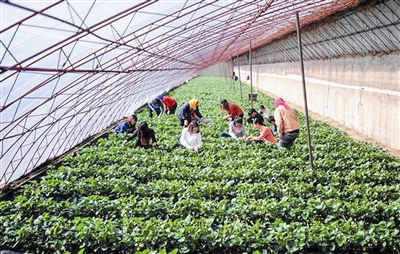 早春时节,沈阳农业大学近百名师生来到该市郊外的草莓种植区进行支农实践活动。师生们在大棚内义务劳动,并对农户进行草莓新品种配套栽培技术指导。2月24日,在辽宁沈阳高花镇,沈阳农业大学师生和农民一起在草莓大棚内劳动。 新华社发