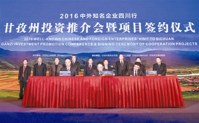 本报讯(记者 杨杰 张涛 文/图)4月11日,由州政府、四川省投资促进局共同主办的2016中外知名企业四川行甘孜州投资推介会暨项目签约仪式在成都举行。本次活动以“投资甘孜·合作共赢”为主题,共推介项目212个(包括推介投资合作项目176个、PPP模式合作项目36个),投资总额1087.7亿元。