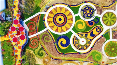 近日,扬州马可波罗花世界公园内百花绽放,各式花坛和园中景观色彩交织,给人全新的视觉感受。