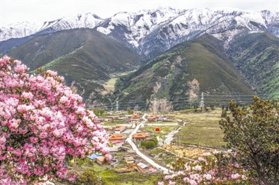 位于道孚县各卡乡境内,距道孚县城18公里,是距道孚县城最近的拥有成片高山杜鹃林的村庄。每至5月中旬,杜鹃竞相绽放、争芳斗艳,红的似火、白的似雪,在雪山和村庄的衬映下,简直是美哉、妙哉,美丽至极。 5月14日,记者来到坡甲村采访,只见此地人在花中,村在景中,勾画出一幅绝美画面。终于按赖不住心中的激动,二话不说,拿起相机一阵狂拍,大有一种“风卷残云尽,方丢手”之势,正如唐代大诗人白居易所言:“云中台殿泥中路,既阻同游懒却还。将谓独愁犹对雨,不知多兴已寻山。才应行到千峰里,只校来迟半日闲。最惜杜鹃花烂漫,春风吹尽不同攀。”(何行铭 本报记者 袁飞 摄影报道) |