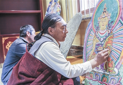 轻轻的敲击声仍然在大厅里回荡,把记者的目光牵到了辽阔的金马草原上。从一幅幅栩栩如生的格萨尔彩绘石刻中,我们仿佛听到了当年格萨尔征战的金戈铁马,也看到了格萨尔彩绘石刻艺术的美好前景。