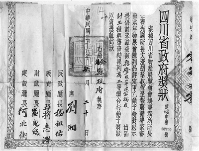 ■甘孜州档案局提供资料 贺先枣 整理 甘孜州档案名录(总第四十九期) 民国28年(公元1937年),四川省曾经举办过一次“物产展览会”,经此次“物产展览会”会场事务所长但齐先、副所长文澄、胡恭叔等组织专家审查后,向主办这次“物产展览会”的上级报告说,在这次的“物产展览”中,由“金汤县”提供的三件陈列品获得提名,结果被评为“三等奖”,“合行给予奖状,以资凭证”。这三件获奖的展品为:鹿皮、山羊皮、家猫皮。发出这张奖状的日子是6月20日。 在公元1937年期间,当时还是由四川省的实力军阀刘湘在担任四川省的主席,当时四川省的民政厅、教育厅、财政厅、建设厅是承办者,所以奖状就是以这些当年的头面人物所在机构和他们的个人签名发出。 在这里要指出的是,奖状上填写的“金汤县”,实际上就是“金汤设置局”。民国21年(公元1932年)正式成立的“金汤设置局”,之前一直是康定县沿大渡河一片管理的地盘,民国24年(公元1935年)才明确隶属雅安行政督察专员公署管辖。西康省建立以后,“金汤设置局”还是由雅安管辖。解放以后,到了公元1951年,“金汤设置局”又重新并入了康定县,成立“金汤区”,下辖新和、汤坝、捧塔等乡。 |