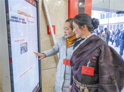 ⑦指点康巴阅报屏让代表及时查看甘孜日报对会议的报道。