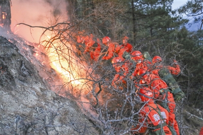 本报讯(刘海 曾鹏 文/图)20日,道孚县甲斯孔乡原始林区发生的森林火灾经过武警甘孜森林支队道孚大队40名官兵连续两昼夜的鏖战,于当日19时成功扑灭。 据了解,此次山火发生在18日下午17时左右,火场位于甲斯孔乡扎嘎山腹地原始林区,植被以高山松和灌木相间,林下腐殖质层较厚,海拔3080米,平均坡度70度,且附近水源水流湍急,无法架设水泵。 火灾发生后,武警甘孜森林支队道孚大队40名官兵迅速赶赴现场展开灭火工作。高原的夜晚气温虽然降至-14℃,但凛冽的寒风却让林火肆意蔓延,扑火官兵跟着火头一路追击,力阻火场面积扩大。19日凌晨,灭火官兵抓住清晨风力小、气温低的有利条件,向火魔发起进攻,歼火头、扑余火、灭烟点、清火线,2小时30分钟后完成了南线灭火作战任务。随后,道孚森林大队官兵兵分两路帮助地方专业灭火队和扑火群众清理烟点、站杆倒木。一路采取接力方式,采用水箱将山脊一处水源不间断传递至火场一线,清理烟点;另一路运用油锯、砍刀、组合工具对任务区战杆倒木进行清理。 20日晚,经过武警道孚森林大队40名官兵两昼夜鏖战,火场实现“三无”。 据统计,此次森林火灾扑救,武警道孚森林大队共扑灭火头4个,火线820余米,清理火点50余个、烟点350余个、站杆倒木61余方、开设隔离带200余米。 |