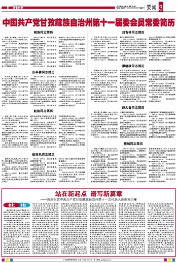 2016.12— 四川省甘孜州委常委,州人民政府党组成员、副州长