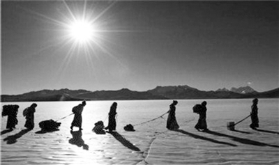 每年高原最冷的时刻,有“仙女眼泪”之称的普莫雍错封冻成冰湖,西藏山南市浪卡子县堆瓦村牧人迎来最佳的羊群转场时机。 今年的转场定在2月9日,时间是按照藏历推算过的,之前也对冰湖进行了实地勘查。前一晚,牧民把羊群赶到湖畔的羊圈里。当启明星从雪山顶上升起,堆瓦村全村的羊已聚集到湖边——牧人要赶在太阳爬上房顶前,趁湖冰还算结实,把羊群引到湖心小岛,靠那里的牧草度过春回大地前“青黄不接”的日子。 此时,村里的妇女们忙着为羊群画出一道冰面上的“羊肠小道”。她们在普莫雍错冰面撒上牛粪炉灰,防止羊蹄打滑,这条连接湖岸和湖心岛总长3公里左右的灰色小道,成为羊群的安全通道。 8点一刻,浩浩荡荡的羊群启程踏上冰面。承受如此大的重量,羊群经过的冰面不时发出“吱吱”的响声,一些冰面出现了裂缝。牧人们神经紧绷起来。羊群变得躁动和缓慢,有些羊不敢往前走,需要牧人从后慢慢推,不时有小羊滑倒在冰面上,牧人索性抱上一段路。 路程过半的时候,太阳开始升起,普莫雍错四周的雪山泛起金色的光芒,宛如仙境。可对于转场的队伍,升起的太阳犹如警钟,必须加快步伐。 牧人赶着羊群、太阳赶着牧人,抓紧“可见光线”和“冰面承受力”双保险的短短两个小时,承袭着祖辈相传的方式前行。 这是一场充满了危险,也充满着希望的转场之旅。 太阳渐渐升高,羊群的影子变得短小。当最后一只羊踏上小岛,牧人们悬着的心才彻底放松下来。 “一般我们要在这里度过一个月左右,在冰面解冻之前返回陆地。”牧人贡桑次仁说。 西藏浪卡子县堆瓦村坐落于西藏山南市浪卡子县蒙达岗日雪山脚下,海拔约5070米,全村43户159人,都是牧民,共有3000多只羊。 由于海拔高,夏季时间短,陆地上的草场无法满足牛羊过冬的饲料。村民选择在每年的隆冬时节,让羊群冒着危险到普莫雍错湖心岛上过冬,度过产仔期。 这种转场牧业方式,在这片离天最近的地方已延续了上千年。 (摘自《新华每日电讯》) 1.村民们去湖心岛上给放羊者送生活用品(2月9日摄)。 2.转场前一天,牧人在湖边清点羊群(2月8日摄)。 3.羊群在牧羊人的带领下走上普莫雍错冰面,沿着牛粪炉灰小道走向湖心岛(2月9日摄)。 |