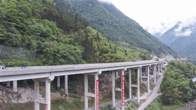 然而到达施工现场,看到宛如巨龙一样盘卧在大山之间的高速,我们的心立即被这条“天路”所征服。