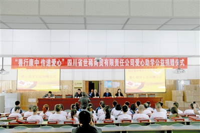 本报讯(记者 邓安华 文/图)“我们感谢四川省世稀商贸有限责任公司董事长刘德华先生一行,千里迢迢来我校为贫困学子捐献衣物及学习用品,他们不图回报,无私地把爱心献给与自身企业毫无经济利益关系的康中,真是精神可嘉、难能可贵!”7月6日,康定中学党委书记、校长陈军在捐赠仪式上感慨地说。 四川省世稀商贸有限责任公司是一家主营服装的企业,近年来该公司在加快企业自身发展的同时,积极承担社会责任,主动参与扶贫济困,多次开展爱心助学捐赠活动。 “我们公司从2011年由一个小作坊一步一步发展到今天,已成为一个初具规模的企业,当初也是因为得到了一些爱心企业家的指点和帮助才有了今天的业绩,我们牢记爱心人士的话,常怀一颗感恩之心,一定要将爱心传递下去。我们更愿意为民族地区的贫困学生尽绵薄之力,使他们走出困境,完成学业,立志成才,报效祖国。”该公司董事长刘德华先生对记者侃侃而谈。 本次捐赠的物品包括服装、文具及体育用品等,总价值超过10万元。 |