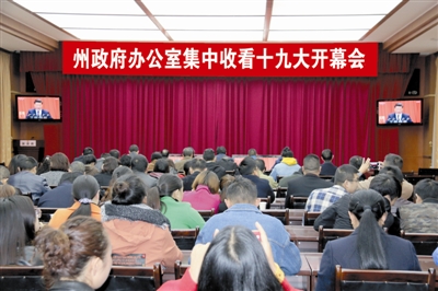 州民干校90余名教职工正在在收看开幕会。该校工作人员陈明有表示:“作为一名教职工,在今后工作中,一定要将十九大精神宣传好,贯彻好,凝聚全州人民发展奔康的共识。”