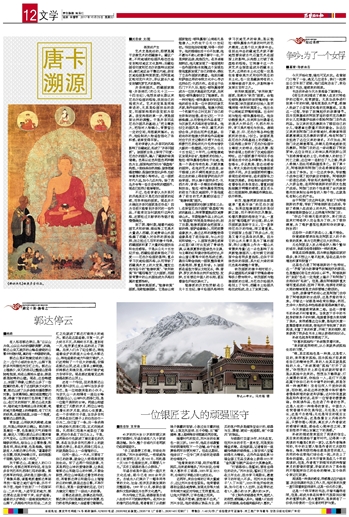 ■刘忠俊 文/图 画派的产生 艺术史是流动的,即便是属于宗教艺术的西藏唐卡。藏区广袤,不同地域的绘画风格往往会受到毗邻地区文化影响:后藏绘画受印度和尼泊尔的影响比较深刻;康巴地区由于靠近内地,故受汉地绘画影响更明显;而阿里地区毗邻克什米尔,所以就长久地受到犍陀罗艺术的影响。 齐吾岗画风。西藏画家雅堆·齐吾岗巴(约公元十三——十四世纪),他想突破长期以来尼泊尔绘画的桎梏,找到自己的视觉方式。艺术的变革是艰难渐进的,尤其是绘画技法的改变,而画面构图的改变较为容易。改变构图的第一步,便是画面比例的调整。于是齐吾冈在尼泊尔画风的基础上“把主尊放大,把陪衬人物缩小,背景留出一定的空间,用图案来填补。此外,他绘制的人物造型弱化了体积感,逐渐变得平面。 有的学者认为:齐吾冈的风格影响了后藏地区,形成了“齐吾冈画派”。该画派主体上保持了印度-尼泊尔的画风,融入了藏族的审美情趣。色彩以红色和蓝色两种颜色为主,画面构成仍旧为“棋盘格”构图,人物线条自然流畅、装饰图案缜密精致、服装纹饰变化多样、忿怒神像身材矮小等特点。这一画派年代久远,如今几近失传。除了类乌齐寺等一些古老寺院的壁画外,现在已经很少能够看到。 不过,也有学者认为齐吴冈的风格其实只是尼泊尔画派的延续,而非单独的画派。现在并不太确定齐吾冈画派是否存在?因为目前只能看到齐吾冈的一些作品,不能肯定当时就流行这种风格,还要经过文献学的考据才能慢慢确定。 到了明、清时期,随着内地绘画艺术和织锦、缂丝等工艺美术大量进入西藏,汉地青绿山水画唤醒了西藏人对自然的原始崇拜;加之经过几百年的唐卡传承,西藏画家积累了大量的绘画技法和生活感悟。于是从公元十五世纪开始,西藏绘画逐渐弱化了印度——尼泊尔绘画的影响,重点学习汉地绘画风格,从而导致了西藏美术史上的大变革,嬗变出流传至今的“勉唐钦莫”、“钦则钦莫”和“噶玛嘎孜”三大画派,而画面背景中的山水画法成为风格归属的重要指标。 勉唐钦莫画派。“勉唐钦莫”画派,简称勉唐画派。它是由山南画家勉拉·顿珠嘉措(山南洛扎县勉唐人,大约生于公元15世纪初。传说他自幼聪慧,写得一手好字。他的婚姻生活十分不如意,他不愿与不称心的妻子厮守一生,于是弃家远游,流浪四方。在羊卓雍湖附近,他无意发现了一套画笔和一些作画的粉本底稿,这个发现也使他重新发现了自己的使命,萌生了立志作画家的愿望。他到后藏和萨迦这样的寺院文化中心寻访名师朵巴·扎西杰布。在受业于朵巴门下不久后,勉拉·顿珠嘉措便成为一位技术高超的艺术家,后来勉拉·顿珠嘉措创立了勉唐派。另一种对勉拉·顿珠嘉措的传说是,他的前世本是一位中原的汉族艺术家,制作丝织挂毯。勉唐大师在一个机缘巧合之时见到了自己前世所制的挂毯,前世记忆一下子被唤醒,从而使他的作品表现了与汉族艺术风格的密切联系。他创立的画风是一种汉、藏艺术的综合体,并因此而声名显赫。目前尚存的勉唐大师亲绘作品能够对应于历史记载的只剩下为法王根敦竹巴所绘的扎什伦布寺措饮大殿的一组壁画。)创立的。公元十五世纪二十年代,山南勉唐地区发现朱砂矿,勉唐派的创始人,勉拉·顿珠嘉措也降生于此地,他是一个具有传奇色彩、天赋异禀的画师。在他的艺术生涯里,由于婚姻上的不满而离家出走,却在出走的路上得到菩萨的启示开始学画。师从唐卡画师多巴·扎西杰布,学得一手精妙的佛像绘制技法。勉拉·顿珠嘉措观想他的前世乃是汉地画师,于是他继承了前世的艺术禀赋创造出了“勉唐钦莫”画风。 勉唐画派的创新主要有三点:1、在保留尼泊尔画派“棋盘格”构成的基础上,将背景置换成汉地青绿山水。早期勉唐作品上的山水与“棋盘格”布局是简单结合的;到了后期,勉唐派画家会把画面上部的佛、菩萨造像缩小,而把前景造像放大,通过这样的调整使得造像具有了前后纵深,与山水空间和谐统一。2、画面色调也逐渐从红蓝(绿)对比变成了青绿色调,以高原夏季的蓝绿色为主调,与主尊的红和黄衣饰形成对比,并由山崖云雾等中间色形成过渡;最后勾勒金线统一画面,整体看来色彩艳丽、厚重且和谐。3、该画派在造型方面以文相见长, 佛、菩萨、罗汉的身体比例开始变短、变胖,五官接近中国人的长相,甚至着装也开始汉族化了。 勉唐派的历史性贡献:在公元十五世纪,唐卡绘画风格转向学习汉地艺术的审美,是以勉拉·顿珠嘉措为代表的时代的艺术潮流,这是个巨大美学冲击。受到此冲击的藏地艺术家不断地想要突破古代石窟艺术在画面上的影响,从构图上打破了棋盘格的桎梏。它将唐卡这一外来艺术全面改造成为西藏本土艺术,这样的本土化过程一定是包含着审美方式和创作观念的本土化,也一定是藏族特有的人本精神渗透于其中,并影响唐卡发展五百年之久。 钦则钦莫画派。“钦则钦莫”画派,简称为“钦孜”画派。由勉拉顿珠嘉措的师弟贡嘎岗堆·钦则钦莫(钦孜画派的创始人是贡嘎岗堆·钦则钦莫居士。他出生于山南地区贡嘎岗堆镇。出生时间与勉拉·顿珠嘉措相近。他自幼酷爱美术,后来拜当时最著名的美术大师朵巴·扎西杰布为师,学习美术理论与技法。通晓了藏、汉、印、尼泊尔等各种绘塑派别的技法。)创立。该画派是在