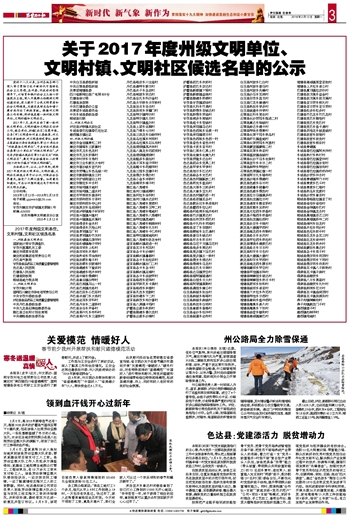 关于2017年度州级文明单位、 文明村镇、文明社区候选名单的公示
