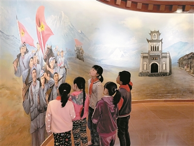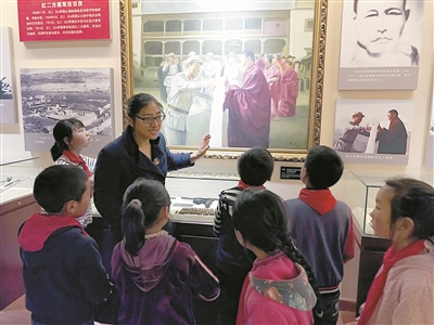 日前,海螺沟景区新兴小学中心校乡村学校少年宫组织少先队员到景区爱国主义教育基地——毛泽东同志住地旧址进行参观,重温红军长征历史,悼念革命烈士,缅怀先烈的丰功伟绩,教育少先队员继承先烈遗志,弘扬长征精神。同时通过新入队宣誓仪式,感恩今天的幸福生活,畅想自己的未来。图为少先队员接受爱国主义教育现场。