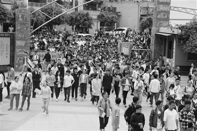醒目的考点横幅、硕大的白板警示、屏幕的诚信字样、滚动的校园广播……上午8时整,康定中学校门准时打开,数百名家长将孩子送至考场,数名门卫和考务人员逐一核实入场考生的身份信息。不多时,校园绿茵场上,已有近千名考生列成方队,等待着入场铃声的敲响。