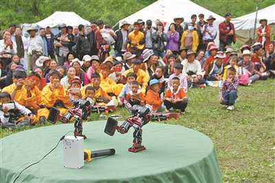 甘孜日报讯 近日,距理塘县城近90公里的哈依乡农牧民群众,在草坝上感受了一下高科技的魅力,机器人的表演让老百姓们大开眼界,激发了青少年学习科学、走近科学的兴趣和热情。