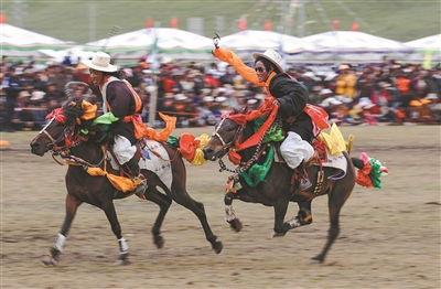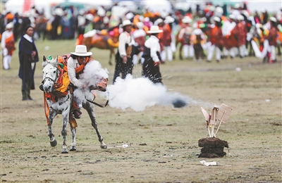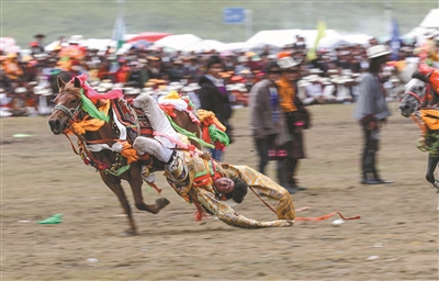 近日,在理塘县奔戈乡萨戈村八一赛马场,来自全县各乡镇近千名牧民进行了传统的马术表演,他们以高超的骑术展演了拾哈达、马上射击、马上射箭、镫里藏身、五彩凌空等马术技巧,把欢乐带到草原,让当地牧民和众多游客享受了一场视觉盛宴。