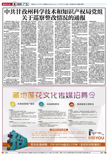 中共甘孜州科学技术和知识产权局党组关于巡察整改情况的通报