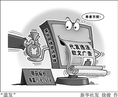 “新华视点”记者发现,不少违法广告混杂在新闻资讯中,很容易让读者以为是真实的新闻信息。以新闻作外衣——正文开始宣传——文末留联系方式,这几乎成为此类广告的普遍套路。 新华社发