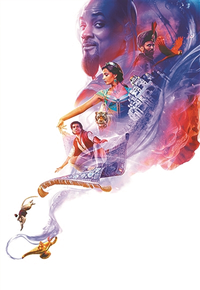 迪士尼第31部动画长片《阿拉丁》1992年上映,该片从阿拉伯传说《天方夜谭》中汲取灵感,曾取得超过5亿美元的全球总票房。最新版真人影片《阿拉丁》于5月24日上映,在故事情节上相对忠实于动画片版,影片讲述在充满异域风情的阿拉伯古国,善良的穷小子阿拉丁和勇敢的茉莉公主浪漫邂逅,在可以满足主人三个愿望的幽默诙谐神灯精灵(威尔·史密斯饰演)帮助下,两人寻找真爱和自我的魔幻冒险。在“鬼才”导演盖·里奇的执导下,影片叙事风格轻松欢快,无垠沙海中矗立的恢弘城邦,繁华的街市和异域奇珍都在大银幕上以独特的视觉方式惊艳还原,加上载歌载舞的场景穿插,充满迪士尼特有的欢快观影气氛。